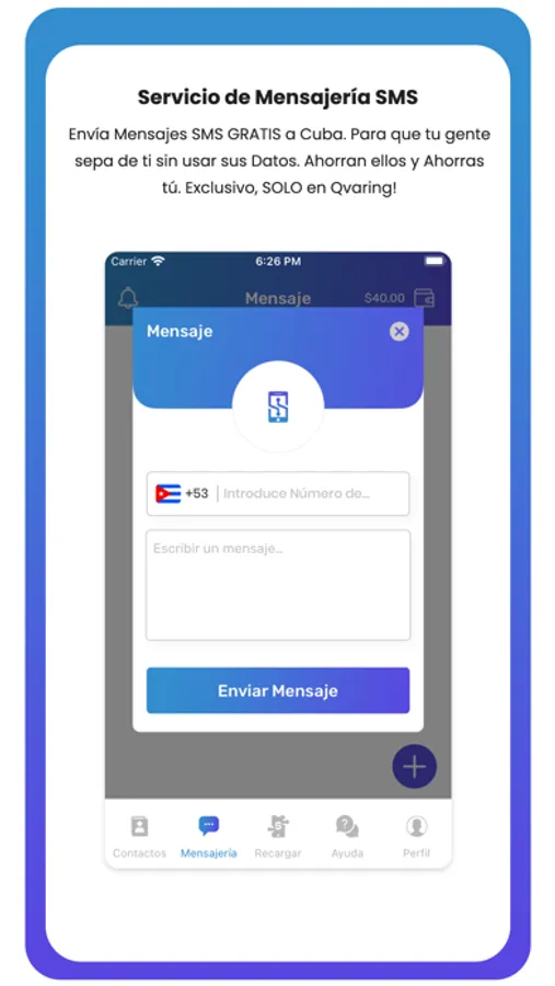 People also choose Qvaring for our EXCLUSIVE SMS FREE service to Cuba. Let your family and friends learn about you while they save their DATA. That's so Great. ONLY in Qvaring!*