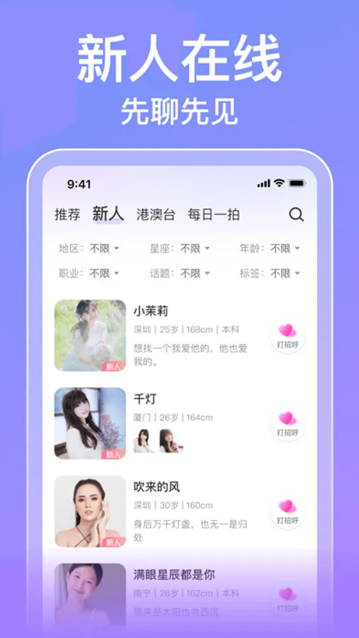 • 新人在线,先聊先见