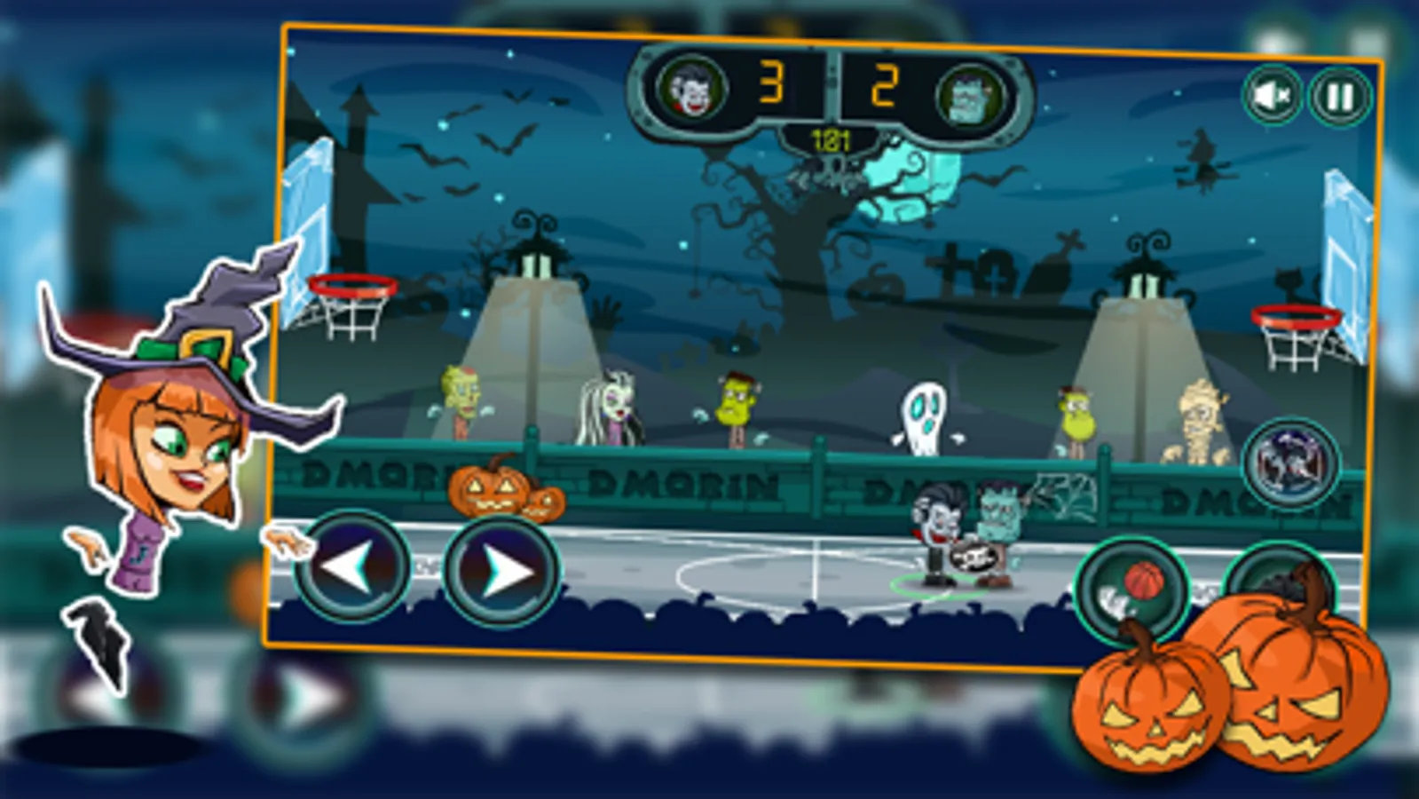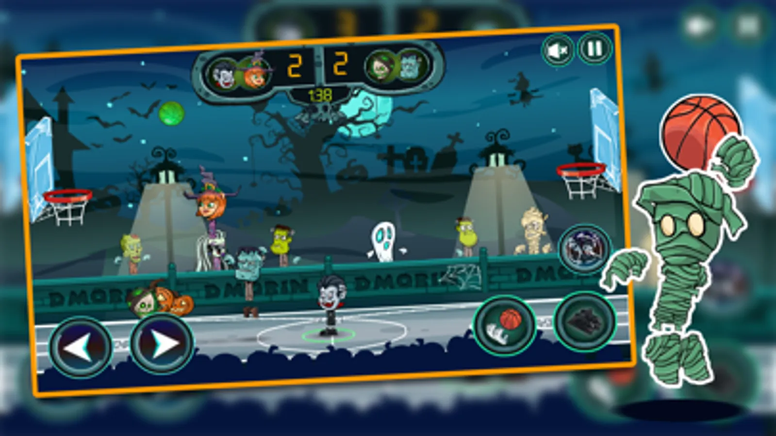 Halloween Basketball Legends is funny and two players big head basketball championship game in which famed scary and toon characters are available! They are: wampire (dracula), frankenstein, witch, mummy, ghost, wizard, lion, cloud, pumpkin! Instructions of gameplay are on the game screen.