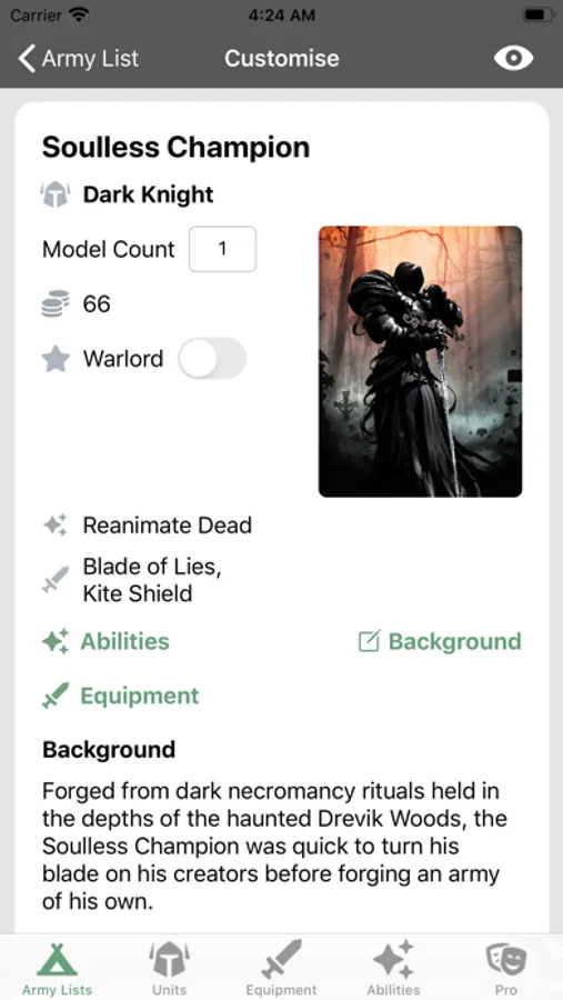Warlord is bringing narrative back! - not only does the app let you create army lists, but also enables you to add images, abilities and backgrounds to your units and armies to create a narrative to your battle even before you hit the table