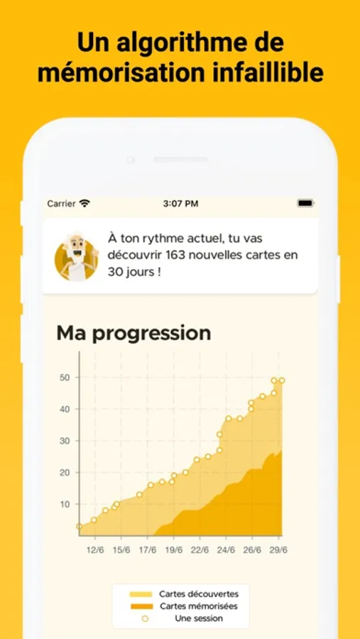 Avec un nouveau mot par jour au minimum, notre système de répétitions judicieusement espacées dans le temps te facilitera grandement la mémorisation du vocabulaire.