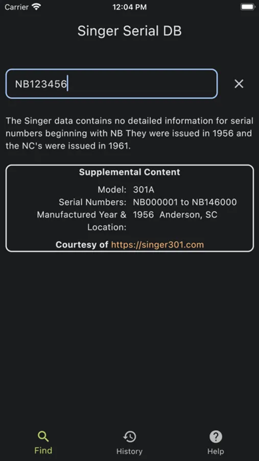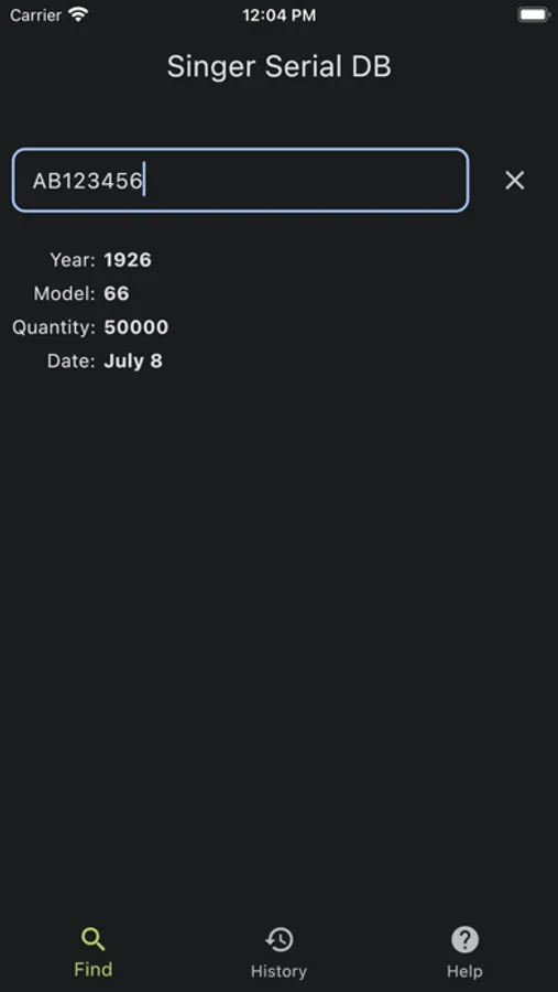 Enter a Singer serial number and the app will find the information about when the serial number was issued and to which Singer model it was assigned.