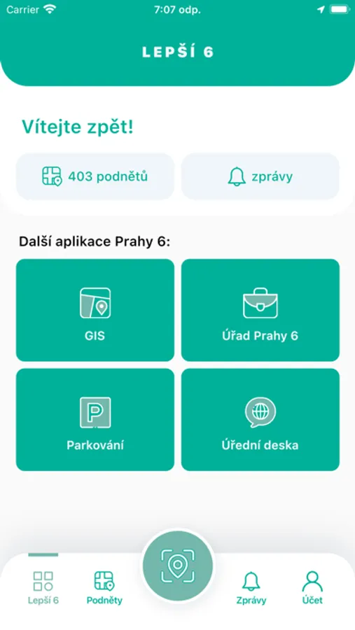 Tato aplikace slouží k hlášení nedostatků v oblasti Praha 6.