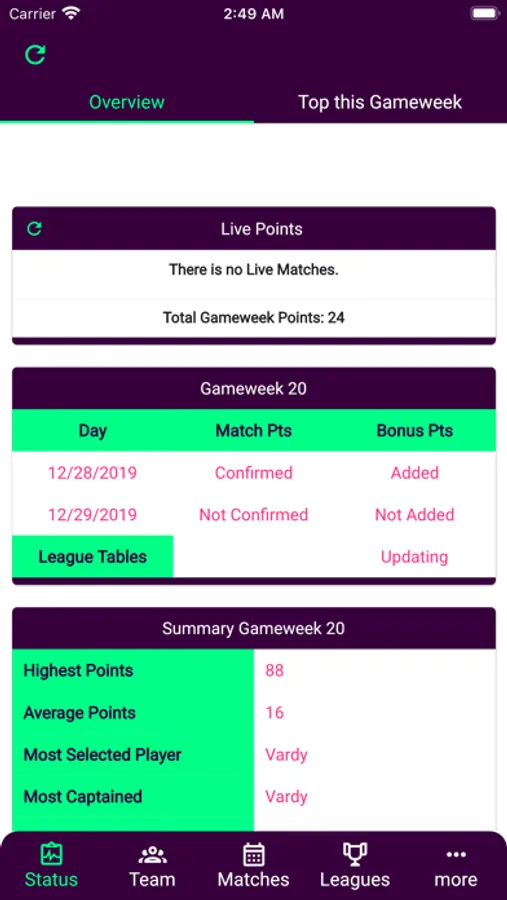 - Comprehensive Player Details: with 1 Click view the Player's Fixtures, Past Matches & Past Gameweeks Points, Statistics