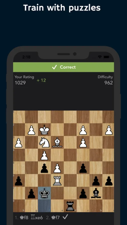 - Improve your tactics with rated chess puzzles. View the progress page and see how your stats have changed over time