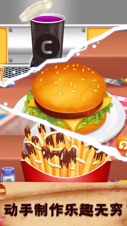 你要快速地学习如何烹制顾客点的汉堡,从简单的单层汉堡开始,不断地学习并推出各种各样的新品。