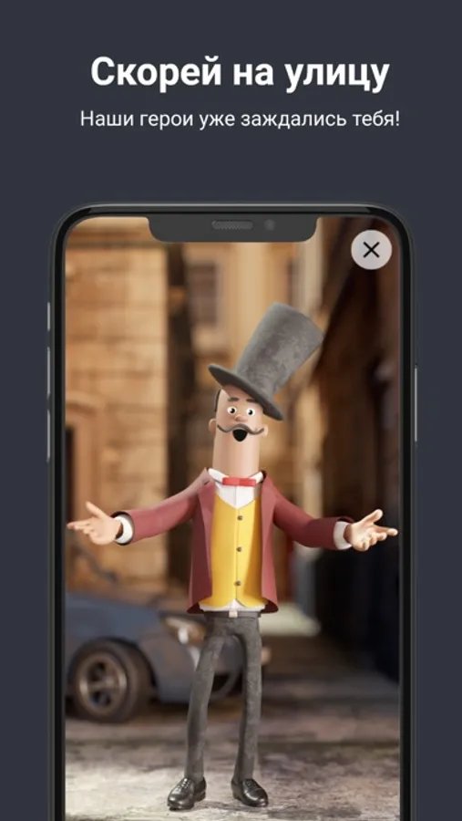 Настоящий мультипликационный сериал на реальных улицах города. Все персонажи живут внутри вашего смартфона: нужно только навести камеру на места событий в Москве и перед вами разыграется анимированная 3D-история в декорациях.