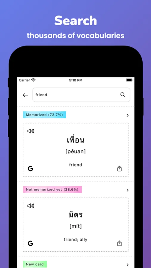 -Ready-to-learn simple and intuitive Thai - English translation flashcards