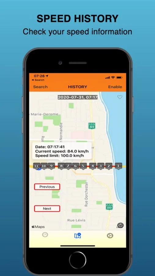 You can store speed history for up to 30 days by enabling history mode before driving.
