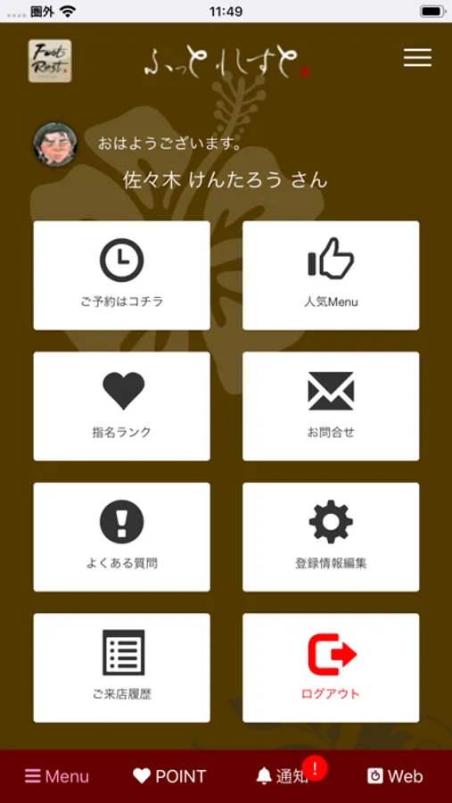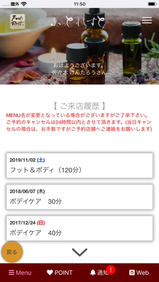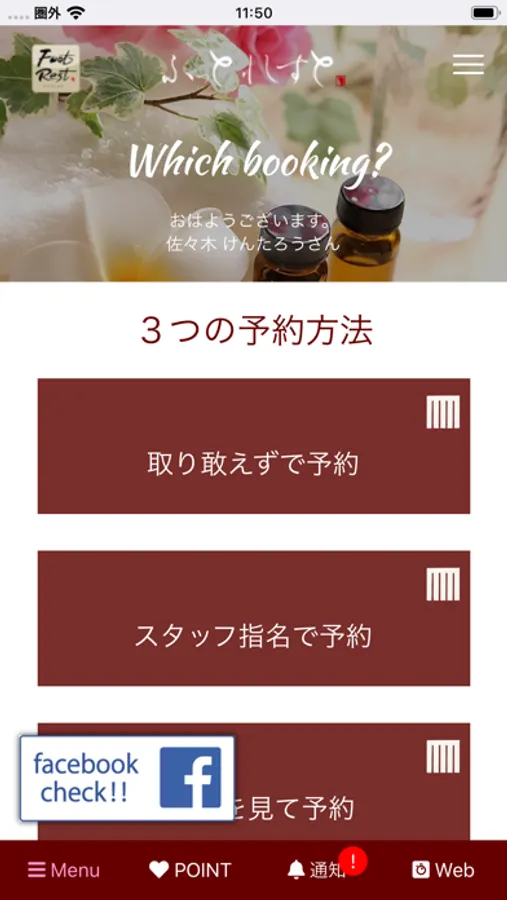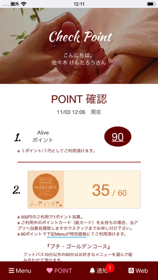 ログイン機能ご利用で、スマート予約の他にPOINT管理もリアルタイムで確認できます。