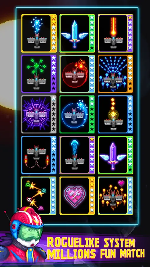 * Rogue Like System: Collect Power Medals and upgrade fighters in game.