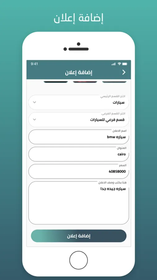 قم بالاعلان عنه الان من خلال التطبيق وسوف يصلك اعلانك الي كل مستخدمي التطبيق