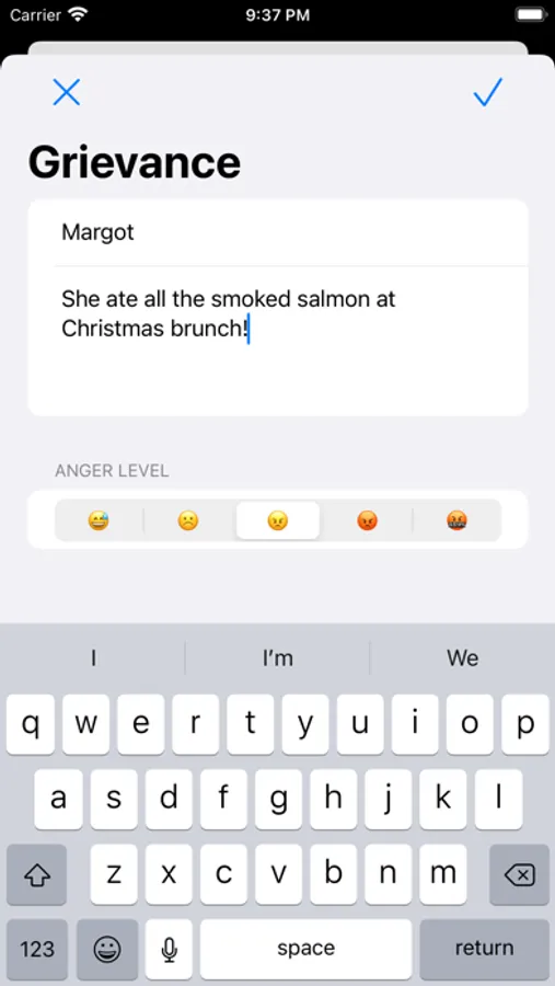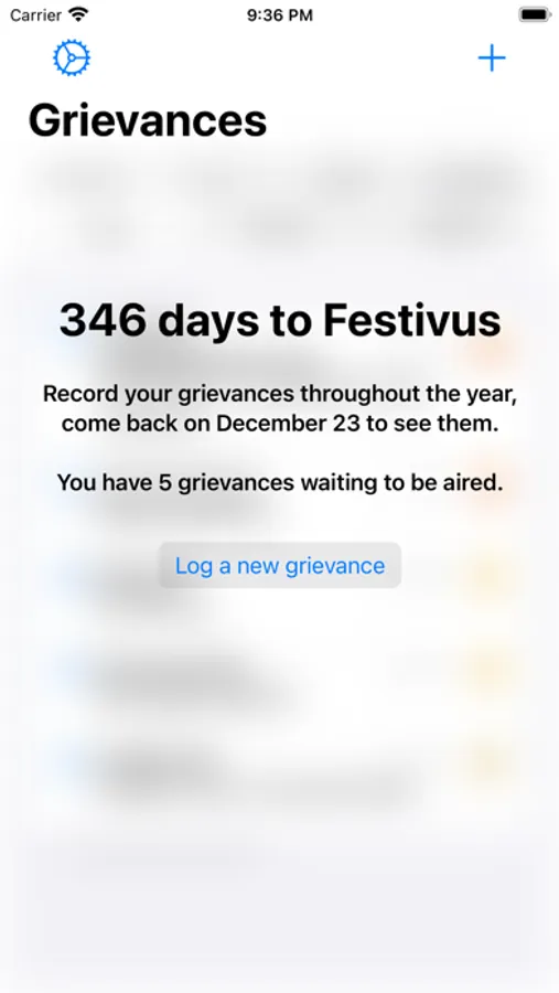 Festivus Grievances lets you keep track of everything that has angered you over the year, giving you all the ammunition you need when Festivus rolls around.