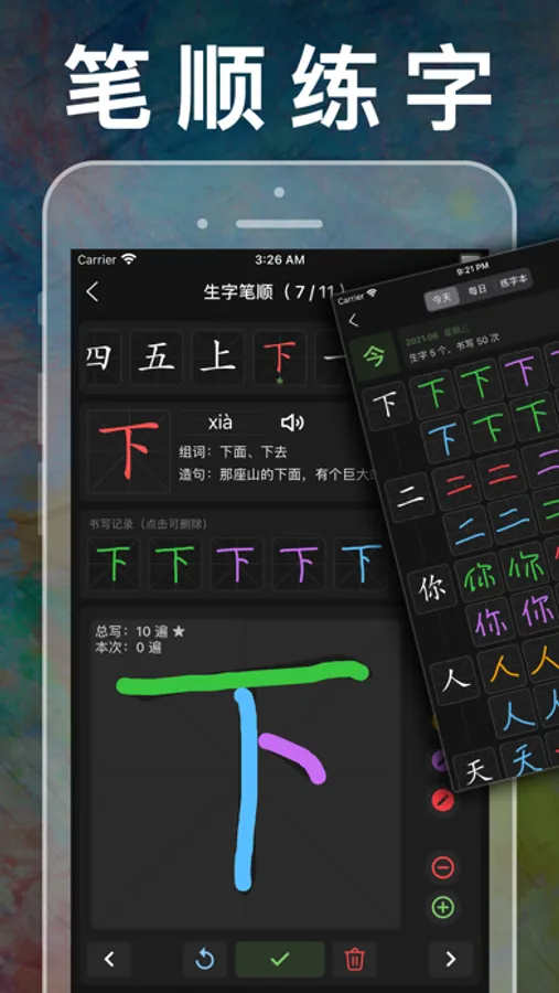 生字训练:手写板,拼音练习、笔顺笔画书写