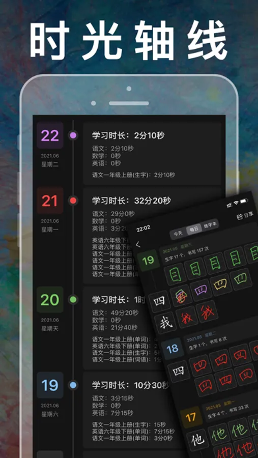 (学习成绩记录:课文学习、学习时长、单词学习、单词训练)