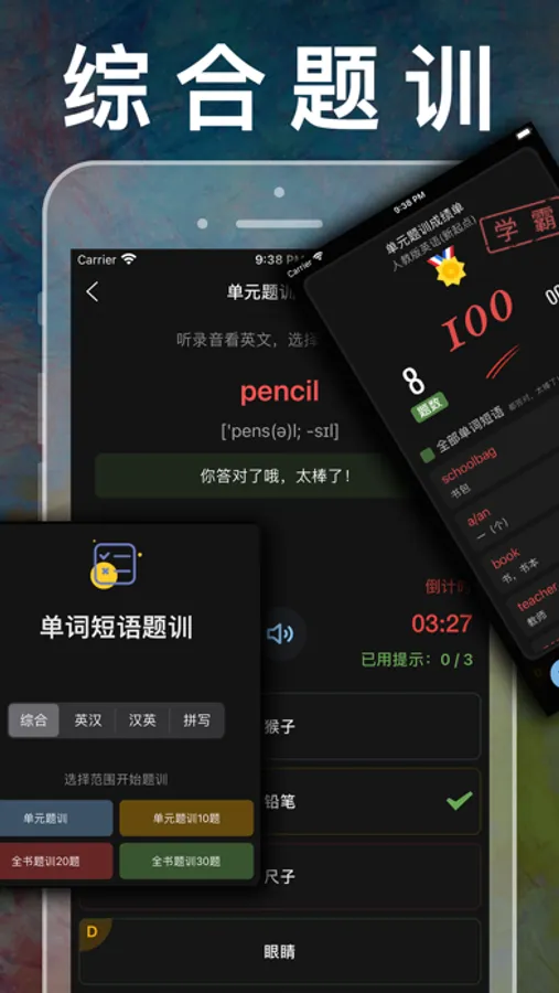 词语测验:记录学习单词短语,图标统计,让进步有个见证!