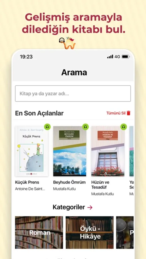 ● Kategoriler, kitap önerileri, arama, popüler aramalar ile yeni sesli kitaplar keşfedin.