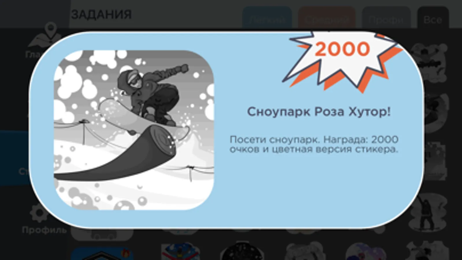- Проходи квесты и выполняй задания от прорайдеров различной сложности на склонах курорта и не только