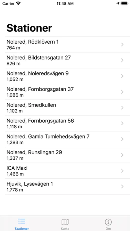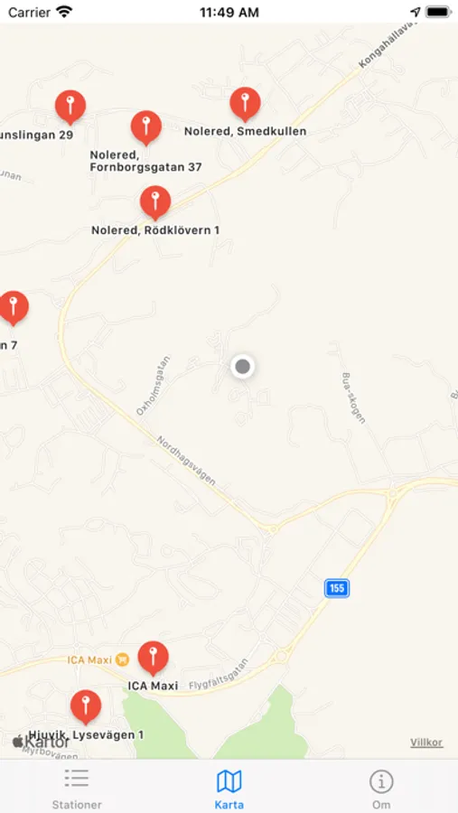 * Kartvy - Om du inte vet var återvinningsstationen ligger kan du använda kartvyn där du får en bra översikt.