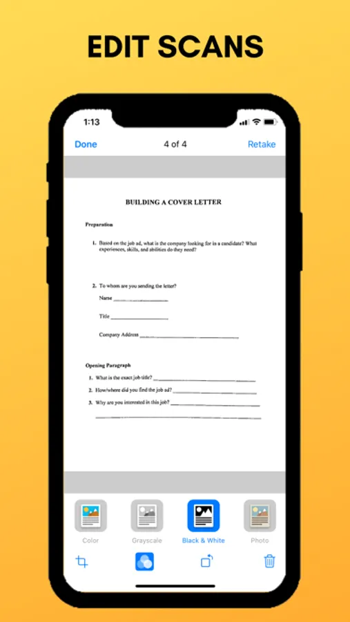 - Edit your scan the way you like - Crop, Filter, and Rotation features.