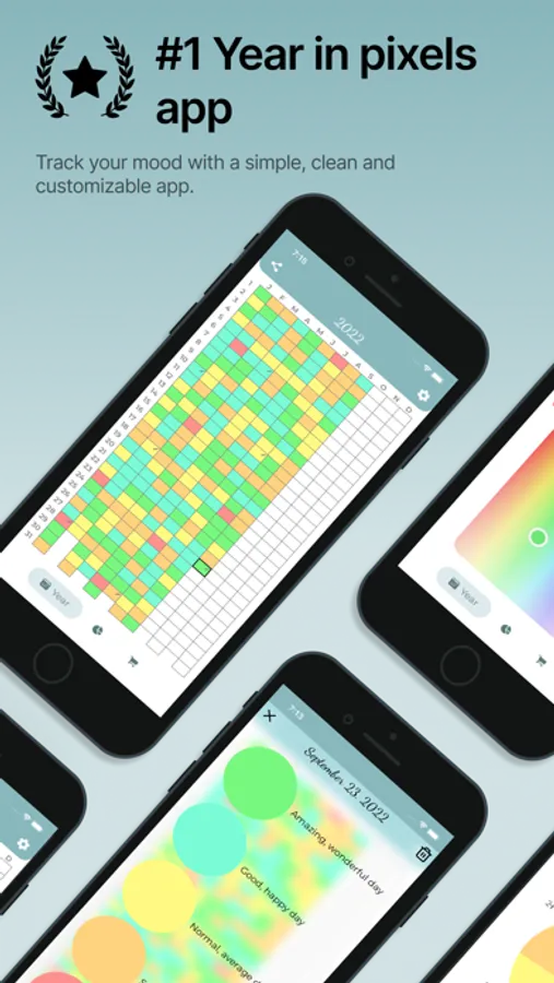 It’s time for another colorful year. You can now put an end to the passive and old-school diaries. If you want an active bullet journal that doesn't just listen to you but gives you feedback and analyses of your moods you have come to the right place. Simply select a mood each day and watch your year turn into pixels.