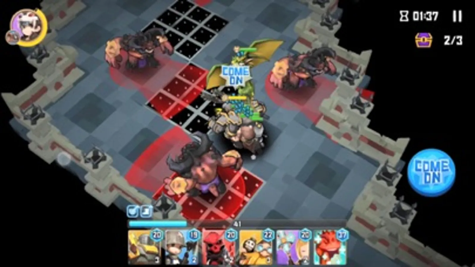 2. Operate the buttons 'Come on/Attack' to move the units.