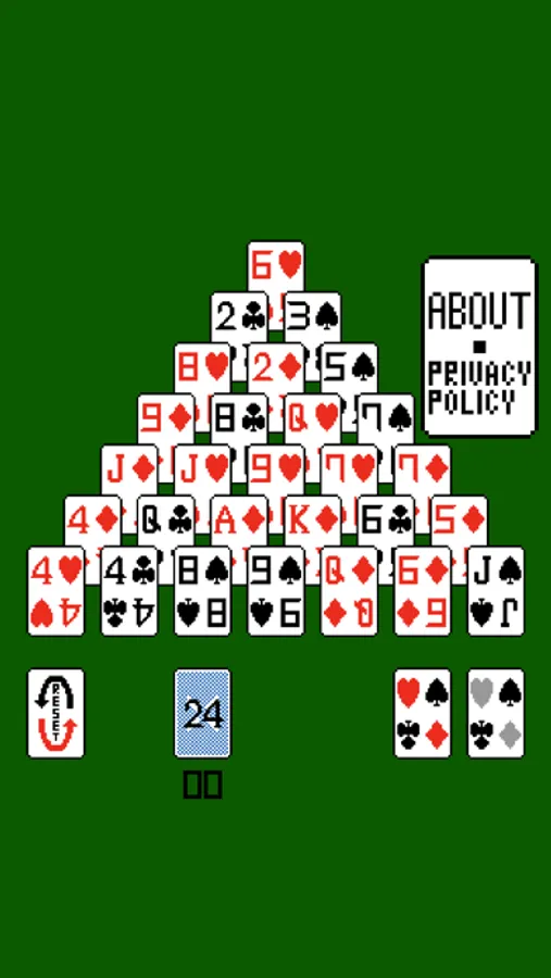 ピラミッド状に配置した場札と、手札、捨て札の一番上のカードをQ(12)とA(1)、6と7等、足して13になる組み合わせで取り除いていき、場札を全て取り除くとクリアです。