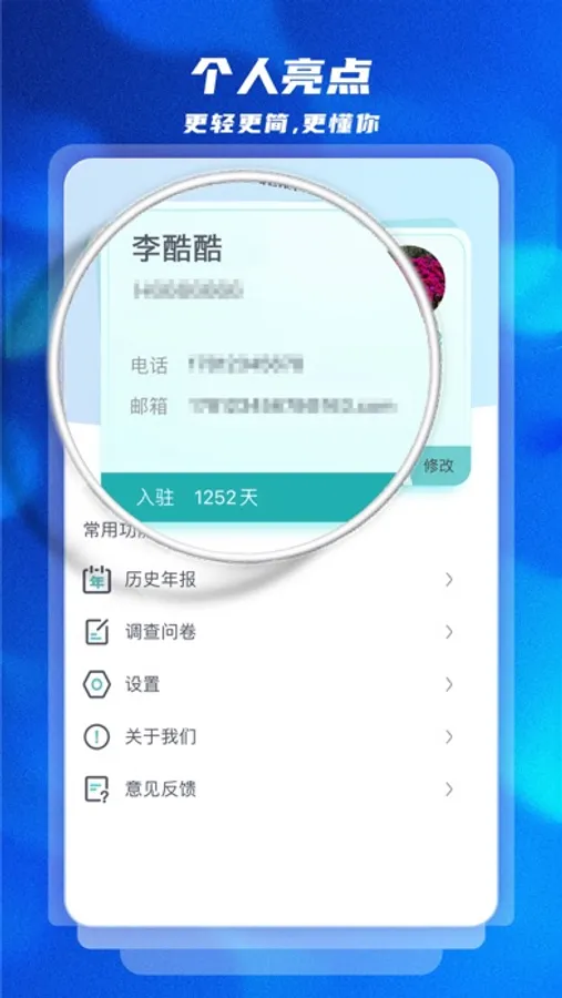 个人中心模块可以查看个人信息,收藏的的报表,设置里面可以更改登录方式,字体大小,暗黑模式,问题库更新