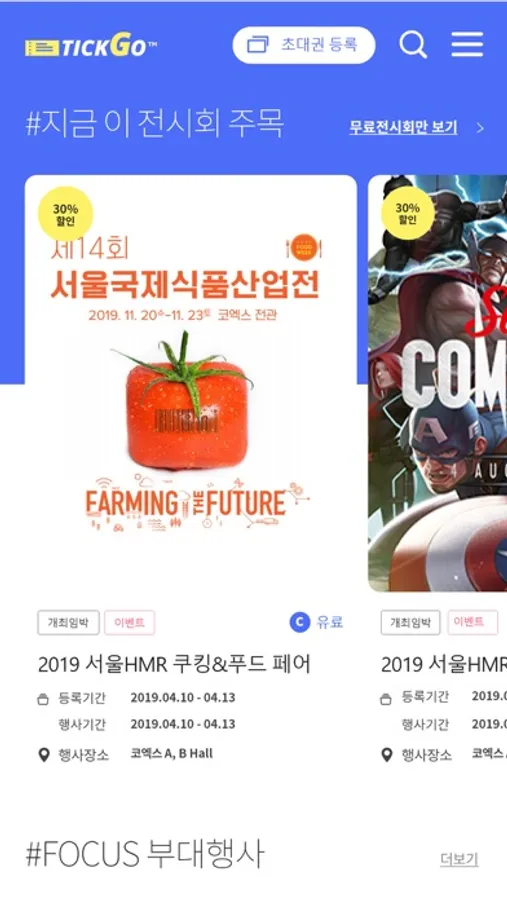 전시회별로 제공되는 다양한 쿠폰 이벤트 및 무료 초대권을 받아 더욱 알찬 행사 참관이 가능합니다.