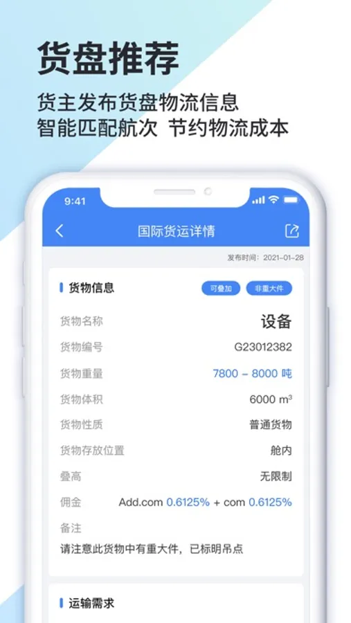 【货盘发布】货主发布货盘物流信息,可和船东的航次智能匹配,帮助货主无缝对接、减少中间环节,节约物流成本;
