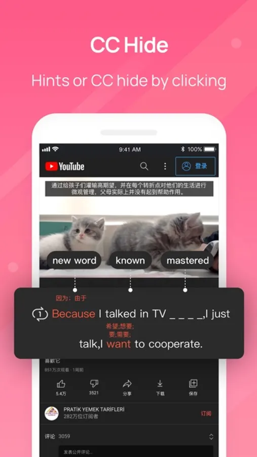 You can click to hide hints and words you have already mastered, gradually getting rid of the dependence on subtitles and eventually relying entirely on yourself to understand the video.
