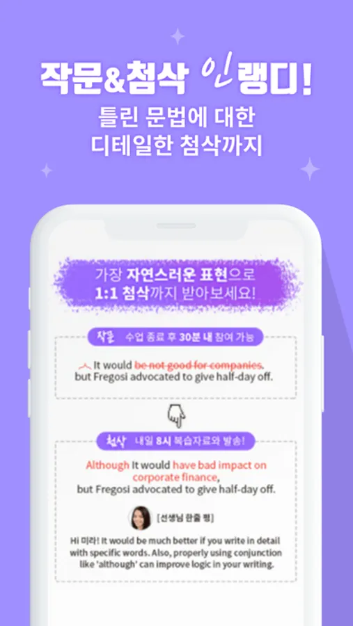 1:1 회화, 딕테이션, 작문 & 첨삭까지 한 번에.