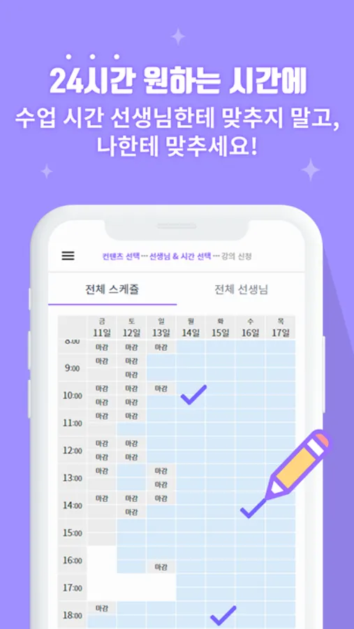 집에서 24시간 내가 원하는 시간에 선생님과 떠들어요.