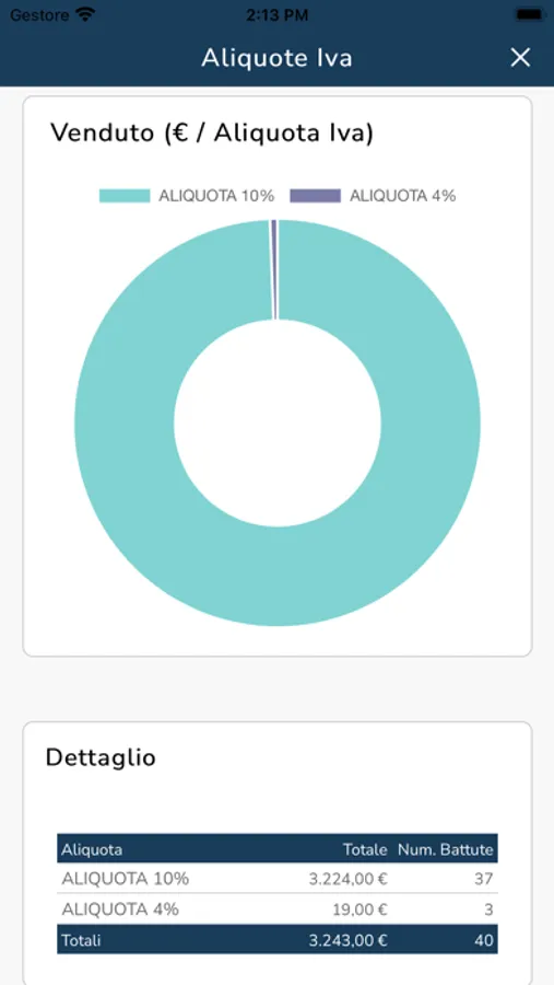 • Analisi del venduto per aliquote Iva