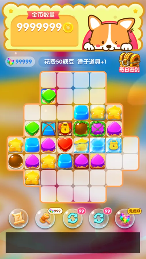 点选两个或多个相邻的相同糖果消除,在有限的时间或者步数获取更多的分数,