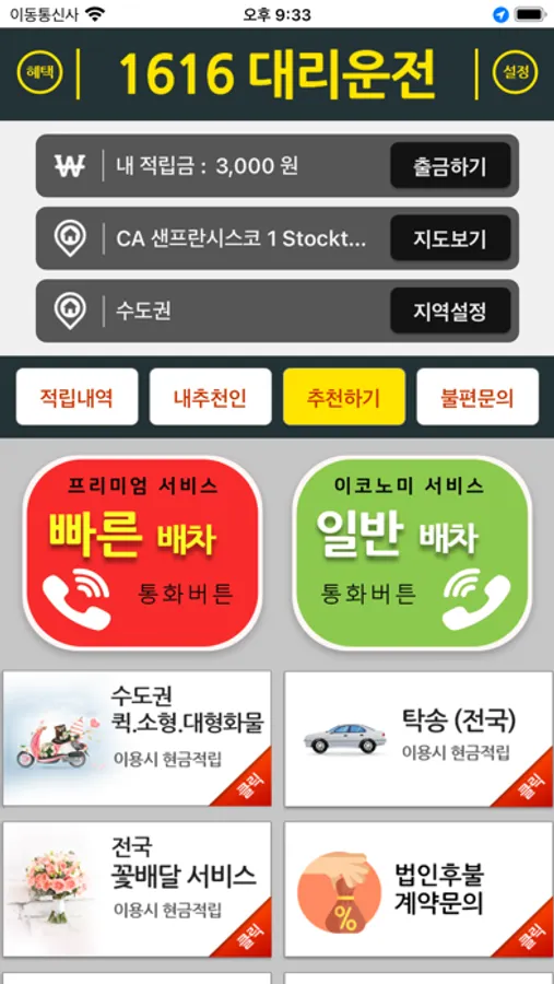 * 1616대리운전은 어플 한번 설치로 대리운전, 퀵서비스, 꽃배달서비스를 이용하실 수 있습니다.