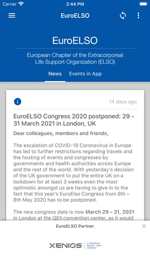 App contains: News, Committees, ELSO and ELSO Chapters, Guidelines, Webinars, ECMO Courses and much more!