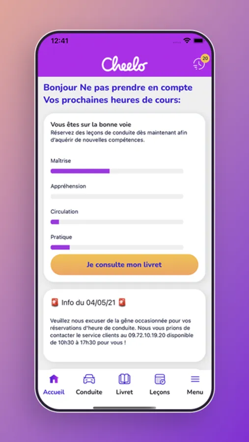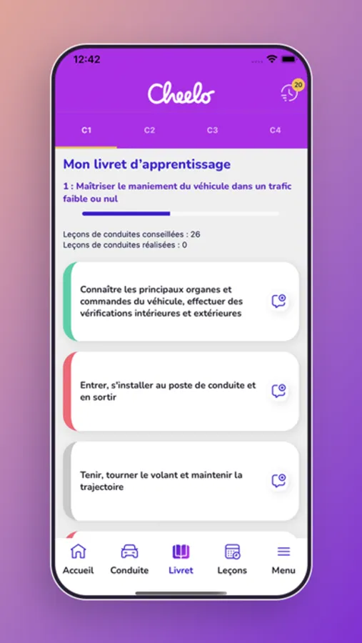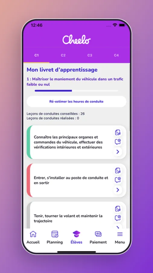 Vous serez accompagné(e) pendant tout votre apprentissage, de l'heure d'évaluation au passage de l'examen du permis de conduire, grâce à un livret pédagogique intégré à votre application.