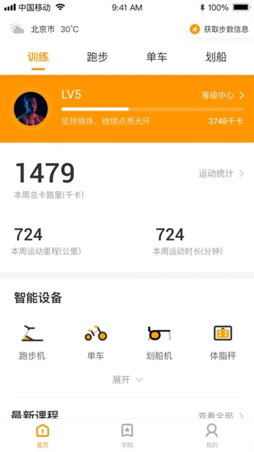 ① 连接不同的设备。app连接不同类型的健身机,你可以看到运动数据,监控健康数据,制定私人健身计划,可以看到移动排行榜,也可以分享移动给你的朋友,提高运动效率