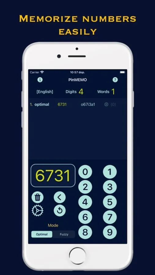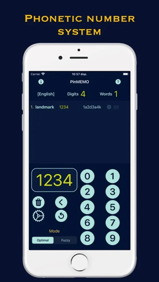 With the help of Phonetic Number System PinMEMO helps you to find substitute words which represent specific number.