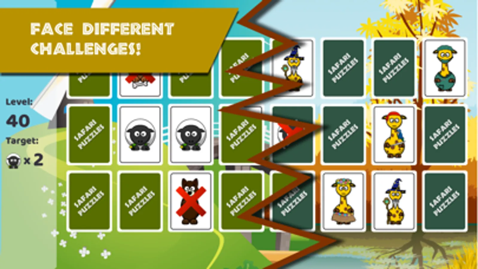 Complete all the levels. The color and the image of the level indicate its game type, from the classic memory to save the sheeps from the evil wolfs!