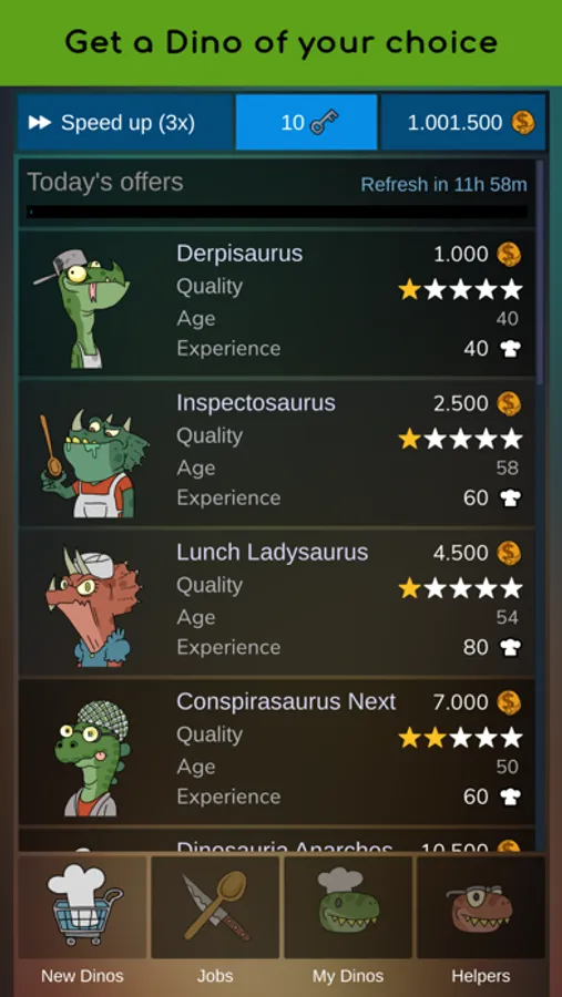 You are in charge of managing a group of very skilful Dino chefs and their small restaurant empire.