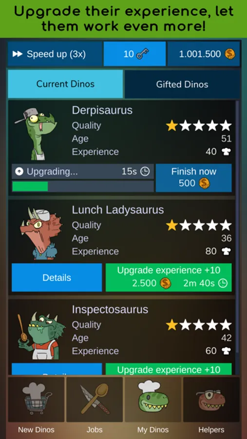 In Idle Dinosaur Restaurant, your goal is to automate everything so much, that you won't have to lift a finger and all of your Dinos will be happy and independent!