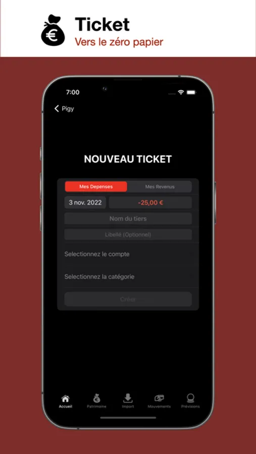 - Catégorisation : Catégorisez vos premières opérations, et ne faites progressivement que valider les propositions faites par l’appli sur base de votre historique