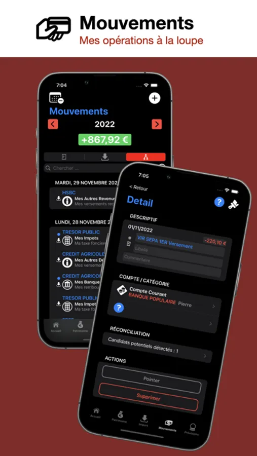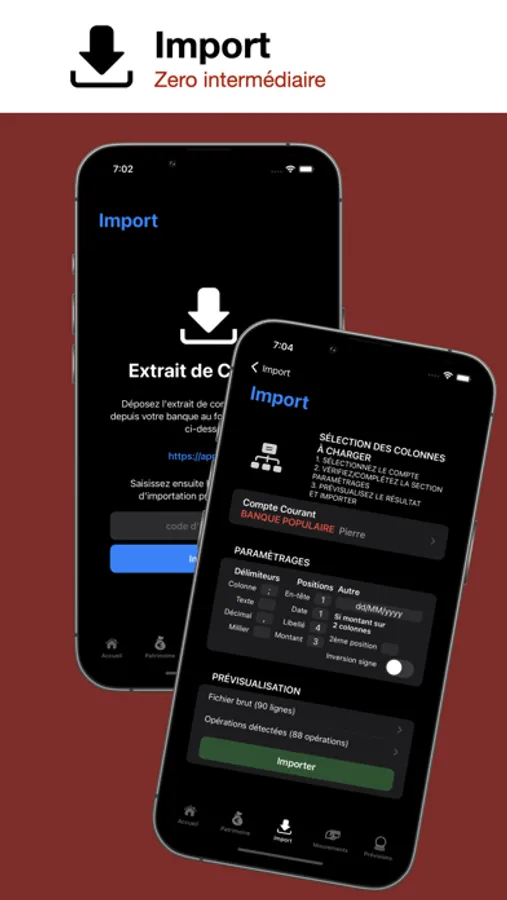 Maintenez une vue agrégée et centralisée de votre patrimoine et de vos dépenses, dans un contexte multi-bancaires et multi-pays, et des possibilités d’import de vos opérations extrêmement flexibles et non restrictives pour s’affranchir de tout recours à un Tiers.