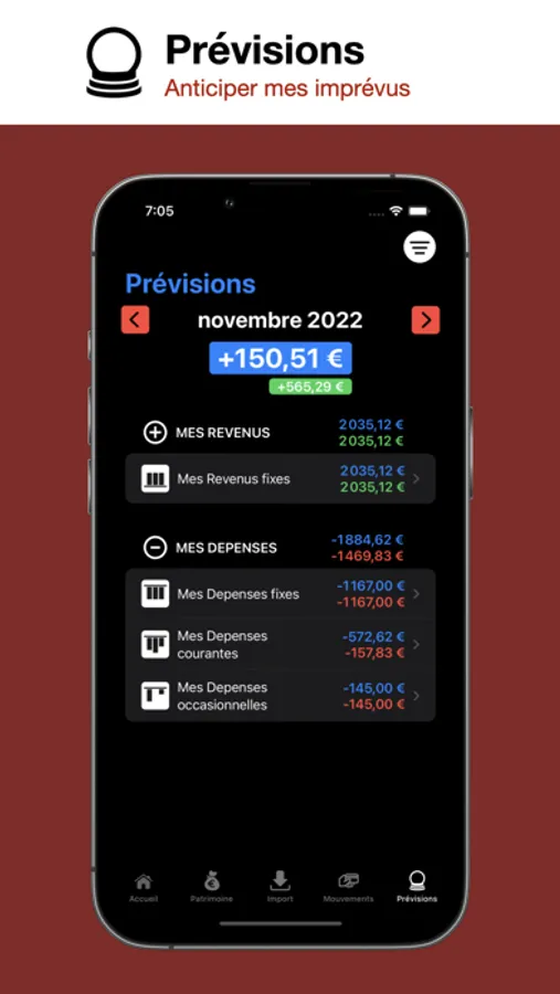- Prévisions : Tous les mouvements de la précédente période revues, prenez connaissance du prévisionnel pour la nouvelle période et attaquez les bonnes résolutions !