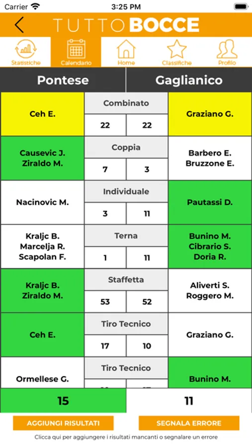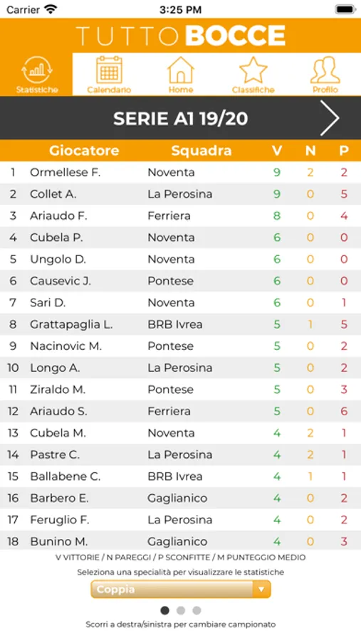 Avrai a disposizione i tabellini aggiornati in tempo reale di tutte le partite, con tutte le statistiche dei giocatori divise per specialità. Inoltre sono presenti tutte le classifiche divise per campionato.