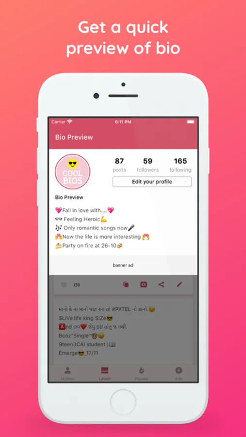 If you’re an active Instagram user or business profile and want to attract more people to follow you than Cool Bio App will help you find best insta bio ideas suitable for your profile. Considering the latest trends and user’s requirement, we’ve developed an easy to use the app with a cool feature that will show you how cool an insta bio would look with your current profile. Yes! You can easily figure this out without logging in.