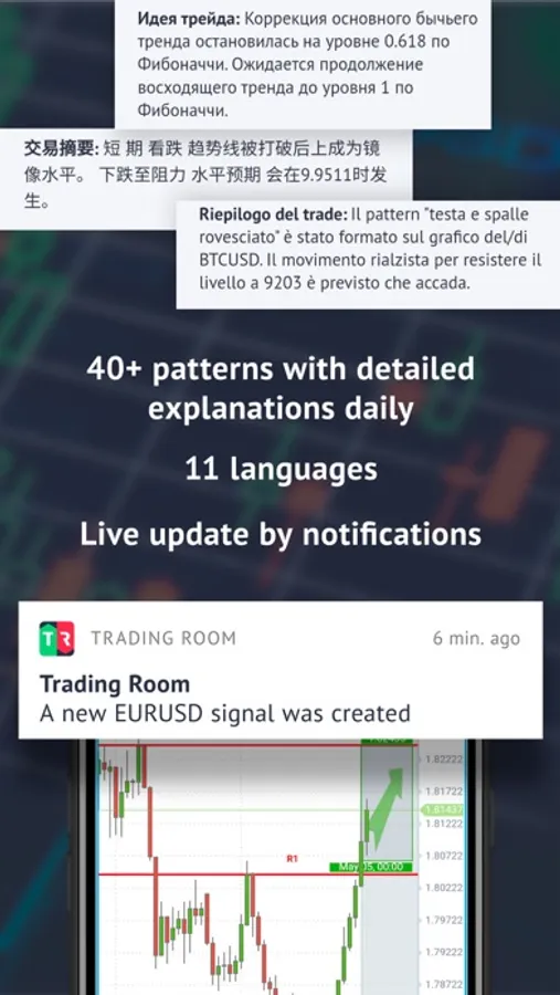 Trading Room is a forex signals and trading analytics application, that will provide you advanced information, analysis and ideas for trading. Team of professional traders is publishing more than 40 daily signals/ideas for trade, based on the hottest market trends and technical analysis patterns. Every idea is presented on candlestick chart, so you can immediately track live its development/potential.