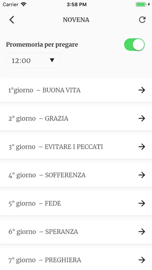 Dopo aver rifiutato l'intera novena o aver toccato il pulsante "reset", puoi iniziare la Novena dal primo giorno.